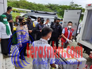 Pantauan Media ini, Vaksin Covid-19 di distribusikan oleh Dinas Kesehatan Provinsi Sulawesi Utara yang diserahkan kepada Dinas Kesehatan Kabupaten Bolmong Utara itu, dikawal ketat Aparat TNI, Brimob dan Dirlantas Polda Sulut, serta Personil Polres Bolmong Utara bersama jajaran Dinas Kesehatan.