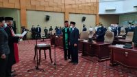 Ketua Pengadilan Negeri Nunukan Rakmad Dwinanto, SH, memandu jalanya pengucapan Sumpah/Janji Wakil Ketua DPRD diikuti oleh Saleh SE dan disaksikan anggota legilatif, unsur Forum Forkopimda beserta Organisasi Perangkat Daerah (OPD) Nunukan.