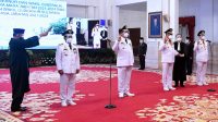 TERASNKRI.COM | JAKARTA – Presiden Joko Widodo pada Senin pagi, 15 Februari 2021, melantik gubernur dan wakil gubernur provinsi Kalimantan Utara dan Sulawesi Utara, untuk masa jabatan tahun 2021-2024. Acara pelantikan berlangsung di Istana Negara, Jakarta, dengan tetap menerapkan protokol kesehatan secara ketat.