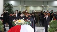 Pada kesempatan itu, Wagub Kandouw ikut meletakkan karangan bunga di depan peti jenazah SHS.
