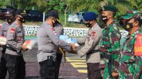 TERASNKRI.COM | KALTARA, NUNUKAN – Polres Nunukan Bersama Intansi TNI,Satpol PP menggelar Apel Pembagian Masker Dan Bansos Sembako Serentak di Lapangan Apel Tribrata Polres Nunukan, Senin (22/2/2021)