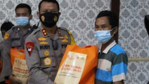 Penyerahan bantuan sosial tersebut dilakukan secara simbolis di Aula Serbaguna Polres Serang Kota.