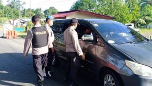 TERASNKRI.COM | BOLMUT, SULUT – Polres Bolaang Mongondow Utara dibawa pimpinan Kapolres AKBP Wahyu Purwidiarso, SH, SIK menggelar operasi pada setiap kenderaan yang melintas di perbatasan Provinsi Sulawesi Utara dan Provinsi Gorontalo, tepatnya di desa Tuntulow Kecamatan Pinogaluman, Kamis (01/04/2021).