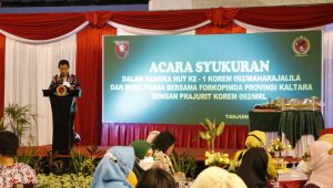 TERASNKRI.COM | Tanjung Selor, Kaltara – Wakil Gubernur Kalimantan Utara (Kaltara) Yansen TP menghadiri undangan acara Hari Ulang Tahun ke – 1 Komando Resor Militer 092/Maharajalila (Korem 092/Mhl) dan Buka Bersama Forum Koordinasi Pimpinan Daerah (Forkopimda) Provinsi Kaltara pada Selasa (20/4).