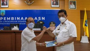 Sebelum melakukan pembinaan, Wagub Yansen TP juga menyerahkan secara simbolis Surat Keputusan Gubernur tentang Pelaksana Tugas (Plt) Direktur RSUD Tarakan kepada dr. Franky Sientoro.