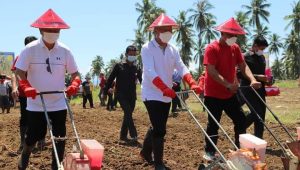 TERASNKRI.COM | MINSEL,SULUT – Bupati Minahasa Selatan Franky Donny Wongkar SH.,yang di dampingi Wakil Bupati Minahasa Selatan Pdt.Petra Yanni Rembang M.Th Menghadiri kegiatan Pencanangan Gerakan Penanaman Jagung Di Kabupaten Minahasa Selatan. Kegiatan tersebut dilaksanakan di Perkebunan Mobongo Amurang Barat (Kamis 22 April 2021)