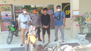 Hasil penyelidikan, akhir pelaku berhasil diamankan di rumahnya berikut barang bukti sepeda motor Kawasaki KLX milik korban pada Kamis (22/04/2021).