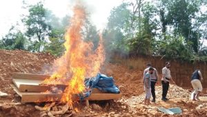 Selanjutnya 1 rakit untuk mendompeng, 2 Asbuk dan 1 pondok terpal dibakar agar tidak bisa digunakan lagi.