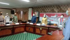 Bupati Nunukan Hj. Asmin Laura Hafid beserta unsur Forkopimda Kabupaten Nunukan mengikuti pengarahan presiden secara virtual ini dari ruang pertemuan VIP lt. IV Kantor Bupati Nunukan.