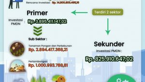 Kalimantan Utara memiliki realisasi jumlah proyek PMDN sebanyak 233,00 proyek dengan realisasi investasi PMDN sebesar 6.095.492.641,07 Ribu Rupiah dari rencana nilai PMDN sebesar 14.800.803.495,16 Ribu Rupiah. Realisasi investasi PMDN ini terdiri dari 2 sektor, yakni sektor primer dengan nilai investasi sebesar 3.895.411.147,02 dan terserap ke sub sektor Tanaman Pangan dan Perkebunan sebesar 2.894.417.368,21 Ribu Rupiah; Serta Pertambangan sebesar 1.000.993.788,81 Ribu Rupiah; Sementara 3 sub sektor lainnya yakni Kehutanan, Perikanan dan Peternakan 0,00 Ribu Rupiah. Kedua adalah sektor Sekunder dengan nilai investasi PMDN sebesar 825.910.647,02 Ribu Rupiah. (Bid. Statistik/els)
