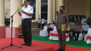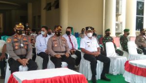 Turut hadir Kapolres Bolmut AKBP Wahyu Purwidiarso, S.H., S.I.K, Wakapolres Bolmut, Asisten Sekda bidang Perekonomian dan pembangunan Jacomina H.J. Mamuaja, S.Pd, Pimpinan OPD dan peserta apel. (Rifai M.)