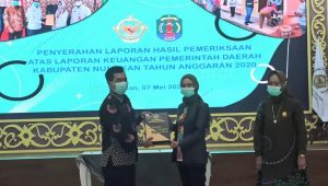 Penghargaan tersebut diterima langsung oleh Bupati Nunukan Hj. Asmin Laura Hafid dengan disaksikan oleh Ketua DPRD Kabupaten Nunukan Hj. Rahma Leppa di Kantor BPK Perwakilan Kalimantan Utara di Tarakan, Jumat (07/05/2021).