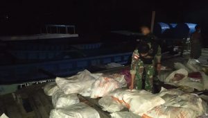 “Pada saat kegiatan patroli  keamanan berlangsung, personel Satgas curiga terhadap pedagang sembako yang ada di Dermaga, kemudian personel mendatangi lokasi tersebut untuk dilakukan pemeriksaan, setelah dilakukan pemeriksaan, didapat 20 karung dan 10 dus berisi daging yang tidak memiliki kelengkapan surat-surat administrasi ,” ujar Dansatgas.