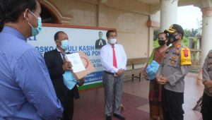 “Dijelaskan Kasubbag Humas Polres Sergai AKP Sopian Kapolres Serdang Bedagai AKBP Robin Simatupang, S.H, M. Hum menyerahan tali asih sebanyak 15 paket kepada Pendeta Gereja HKI Resort Kampung Pon dan para Penatuah Gereja.