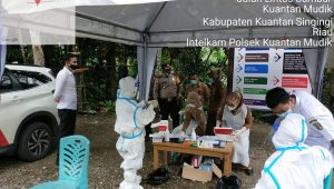 TERASNKRI.COM | RIAU- Guna mencegah penyebaran Covid-19 khususnya di Provinsi Riau pasca Idul Fitri 1442 H, Polres Kuansing bersama Satgas Covid-19 Kabupaten Kuansing menghelat pemeriksaan Swab Antigen kepada para pelaku perjalanan lintas darat khususnya yang akan melewati Pos Penyekatan Perbatasan Riau-Sumbar yang berada di Desa Kasang, Kecamatan Kuantan Mudik Kabupaten Kuansing.