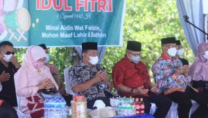 TERASNKRI.COM | BOLMUT, SULUT – Bupati Bolaang Mongondow Utara Drs. Hi. Depri Pontoh didampingi Wakil Bupati Drs. Hi. Amin Lasena, M.AP menghadiri acara Halal Bihalal sekaligus silaturahmi, bertempat di Pantai Desa Bolangitang I, Kamis (20/5/2021).