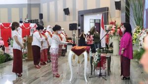TERASNKRI.COM | MINSEL, SULUT -Bunda Paud Sulawesi Utara Ny. Ir. Rita Maya Dondokambey-Tumuntuan, Melantik Ny.Elsje Rosje Wongkar-Sumual Sebagai Bunda Paud Minahasa Selatan, bersama para Bunda Paud Kabupaten dan Kota se Provinsi Sulawesi Utara. Kegiatan tersebut bertempat di Aula Mapalus Kantor Gubernur Sulawesi Utara (Jumat 21 Mei 2021).