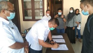 TERASNKRI.COM | BOLMUT, SULUT – Dinas Pekerjaan Umum dan Penataan Ruang Kabupaten Bolaang Mongondow Utara menggelar kegiatan Penandatanganan Perjanjian Kerja Sama (PKS) Program Penyediaan Air Minum dan Sanitasi Berbasis Masyarakat (PAMSIMAS) III dan Program Sanitasi Lingkungan Berbasis Masyarakat (SLBM) T.A. 2021, Rabu (9/6/2021).