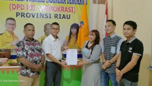 Dalam penyerahan SK, Ketua DPD PJID Riau Jetro Sibarani SH., MH, didampingi Sekretaris DPD PJID Riau Anhar Rosal dan Wakil Ketua II PJID Riau Martin.