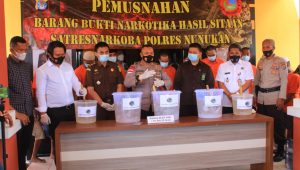 TERASNKRI.COM | NUNUKAN, KALTARA – Polres Nunukan kembali menggelar pemusnahan Barang Bukti Narkotika hasil sitaan Sat Resnarkoba Polres Nunukan. kegiatan tersebut di gelar di Mako Polres Nunukan Jl. Bharatu Aldy Nunukan Selatan Kabupaten Nunukan, Selasa (29/6/2021)