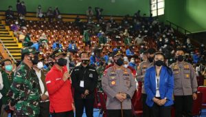 TERASNKRI.COM | JAKARTA – Panglima TNI Marsekal Hadi Tjahjanto, Kapolri Jenderal Listyo Sigit Prabowo dan Menteri Kesehatan (Menkes) Budi Gunadi Sadikin meninjau langsung vaksinasi massal yang diselenggarakan oleh elemen mahasiswa di GOR Bulungan, Jakarta Selatan, Rabu (14/7/2021).