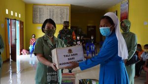 TERASNKRI.COM | NUNUKAN, KALTARA – Komandan Kodim 0911/Nunukan Letkol Czi Eko Pur Indriyanto dan Ibu Ketua Persit Kartika Chandra Kirana Cabang LVIII Dim 0911/Nnk Ny. Lendha Eko Pur Indriyanto beserta Staf Kodim mengunjungi Tiga Panti Asuhan di Pulau Nunukan yakni Yayasan Arruhamma Aisyiyah, Yayasan Santa Maria Protegente dan Yayasan Al Kautsar, Jum’at (23/7/2021)