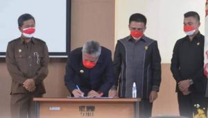 Dalam Rapat Paripurna tersebut, Bupati dan wakil Bupati melakukan Penandatanganan nota kesepakatan rancangan Kebijakan Umum Anggaran (KUA), Dan Rancangan Prioritas Plafon Anggaran sementara (PPAS) tahun anggaran 2022 antara kepala daerah dan pimpinan DPRD Kabupaten Minahasa Selatan. (Corry B Nj )