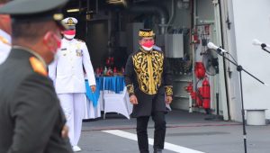 Gubernur Kalimantan Utara (Kaltara) Zainal A. Paliwang bertindak sebagai Inspektur Upacara diatas kapal KRI I Gusti Ngurah Rai-332 Satkor Koarmada II.