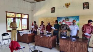 Usai pengucapkan janji yang telah dibuat berdasarkan hasil kesepakatan bersama dilanjutkan dengan penandatanganan naskah deklarasi oleh para calon kepala desa, mengetahui Sekcam kota Komba Utara dan Kanit Intel dari Polsek Kota Komba.