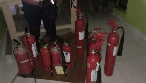 Untuk memadamkan api beberapa tabung APAR (Alat Pemadaman Api Ringan) tampak digunakan sehingga api tidak sempat mejalar ke ruangan lainnya. APAR ini sangat bermanfaat sebagai langkah darurat dan cepat untuk memadamka api. Tabung APAR ini sendiri berisi tepung kimia ataupun gas CO2 yang bila disemprotkan dapat segera mematikan api yang belum membesar.