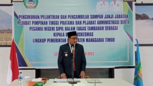 Terasnkri.com | Matim, NTT – Wakil Bupati (Wabup) Manggarai Timur Drs. Jaghur Stefanus melantik pejabat pimpinan tinggi pratama dan pejabat administrator serta Pegawai Negeri Sipil dalam tugas tambahan sebagai kepala UPTD puskesmas.