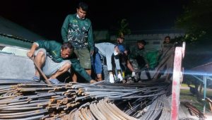 TERASNKRI.COM | Bontang, Kaltim – personel Kodim 0908/Bontang bersama-sama bahu membahu dengan semangat gotong-royong untuk mengerjar target kegiatan fisik yaitu melanjutkan membuat Fabrikasi besi pembangunan turap sungai pra TMMD ke-112, yang akan di laksanakan di Kelurahan Api-Api, Kecamatan Bontang Utara, Kota Bontang, Jum’at (3/9/2021).