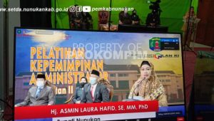 TERASNKRI.COM | NUNUKAN, KALTARA – Bupati Nunukan Hj. Asmin Laura Hafid, SE, M.M,P.hd membuka acara Latihan Kepemimpinan Administrator Angkatan II (Dua) Tahun 2021 di Kantor Bupati Nunukan bersama dengan Kepala Pusdiklat KMP LAN Makassar Dr. Andi Taufik, M.Si, Sekretaris Daerah Kab. Nunukan Serfianus, S.IP, M.Si, Kepala BPSDM Prov. Kaltara Muhammad Ishak, SE,MM, Asisten Administrasi Umum Asmar, SE, M. Si, Kepala BKPSDM Kaharuddin Tokong, SS dan diikuti oleh para widyaiswara dan peserta latihan secara Virtual. Acara ini diselenggarakan oleh Pemerintah Kab. Nunukan bekerjasama dengan Pusdiklat KMP LAN Makassar, Selasa (14/9/2021)