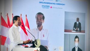 TERASNKRI.COM | JAKARTA – Presiden Joko Widodo melakukan groundbreaking pembangunan pabrik baterai kendaraan listrik pertama di Indonesia. Tak hanya di Indonesia, pabrik milik PT HKML Battery Indonesia yang berlokasi di Kompleks Karawang New Industrial City, Kabupaten Karawang tersebut juga merupakan pabrik baterai kendaraan listrik pertama yang ada di Asia Tenggara.
