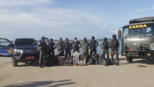 “Kegiatan penyerahan barang sitaan ini, kami (Satgas) laksanakan secara bertahap karena berada di dua tempat, pertama kami laksanakan di Makotis Satgas, mekanisme dilakukan penjemputan oleh pihak Bea Cukai, dan kedua kami Laksanakan di dermaga Pelabuhan Tunon Taka yang merupakan hasil tangkapan dari seluruh pos satgas pamtas yang berada di wilayah Perbatasan dengan tetap melalui pengawalan sesuai SOP Satgas dan tetap tidak mengabaikan prosedur kesehatan,” ujar Dansatgas