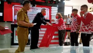 Terasnkri.com | Minsel, Sulut – Bupati Minahasa Selatan Franky Donny Wongkar SH bersama Wakil Bupati Pdt. Petra Yani Rembang M.Th lepas atlet dan pelatih yang akan mengikuti ajang Pekan Olahraga Nasional (PON) XX Tahun 2021 di Papua.