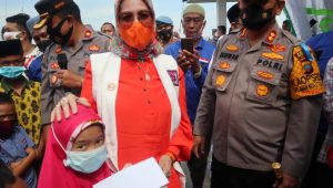 TERASNKRI.COM | Tg. Tiram, Sumut – Pembina Kartini Komunitas Sedekah Jumat (KSJ) DR Henny Ikhwan M.Pd yang juga Ketua Cabang  Bhayangkari Polres Batu Bara  menyerahkan bantuan kepada anak yatim dan yatim piatu serta masyarakat nelayan seusai penanda tanganan Memory of Understanding (MoU) antara KSJ dengan MIO dan HNSI (Himpunan Nelayan Seluruh Indonesia).