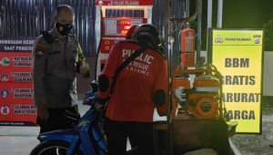 Seluruh Anggota Polsek Pelaihari berinisiatif meringankan beban para relawan tersebut dengan membuat SPBU BBM Gratis untuk warga yang dalam situasi darurat.