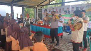 TERASNKRI.COM | Batu Bara, Sumut – Ketua Umum Lembaga Perlindungan Anak Indonesia ( LPAI ) DR Seto Mulyadi M.Psi, M.Si ( Kak Seto ) bersama Kapolres Batu Bara AKBP Ikhwan Lubis SH, MH mendongeng dan memberi hiburan keanak yatim dan yatim piatu di Pendopo Kampung Sedekah Petatal Batu Bara, Jumat (08/10/2021).