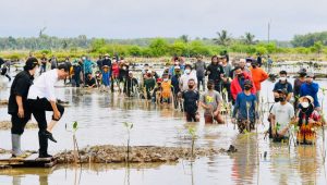 Presiden Joko Widodo datang ke Desa Bebatu untuk melakukan penanaman mangrove bersama masyarakat setempat dan para penggiat lingkungan. Selain itu, sejumlah duta besar negara sahabat tampak turut serta menanam mangrove.