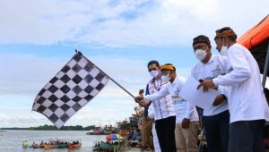 TERASNKRI.COM | TANJUNG SELOR, KALTARA – Wakil Gubernur Kalimantan Utara Dr Yansen TP MSi melepas bendera start tanda dimulainya perlombaan balap ketinting pada ‘Festival Sungai Kayan’ dalam rangka rangkaian perayaan Hari Jadi ke-61 Kabupaten Bulungan dan ke-231 Tanjung Selor, Selasa (19/10/2021).