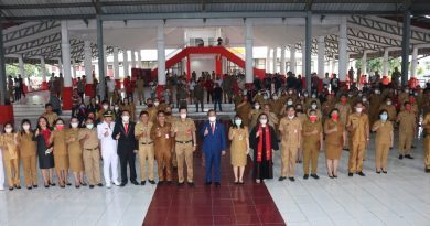 Ketua PGRI cabang Kecamatan Kota Komba Utara, Ubertus Dumar,S.Pd, didampingi oleh Kepala Sekolah SDI Lenang Neros Mulyanto Tosiwan Ngo,S.Pd, Kepala SDK Wano Hironimus Lahas,S.Pd, Kepala SDI Pejek Paulus Hamu dan Kepsek SMPN 8 Kota Komba Yuliana Anjelus,S.Pd