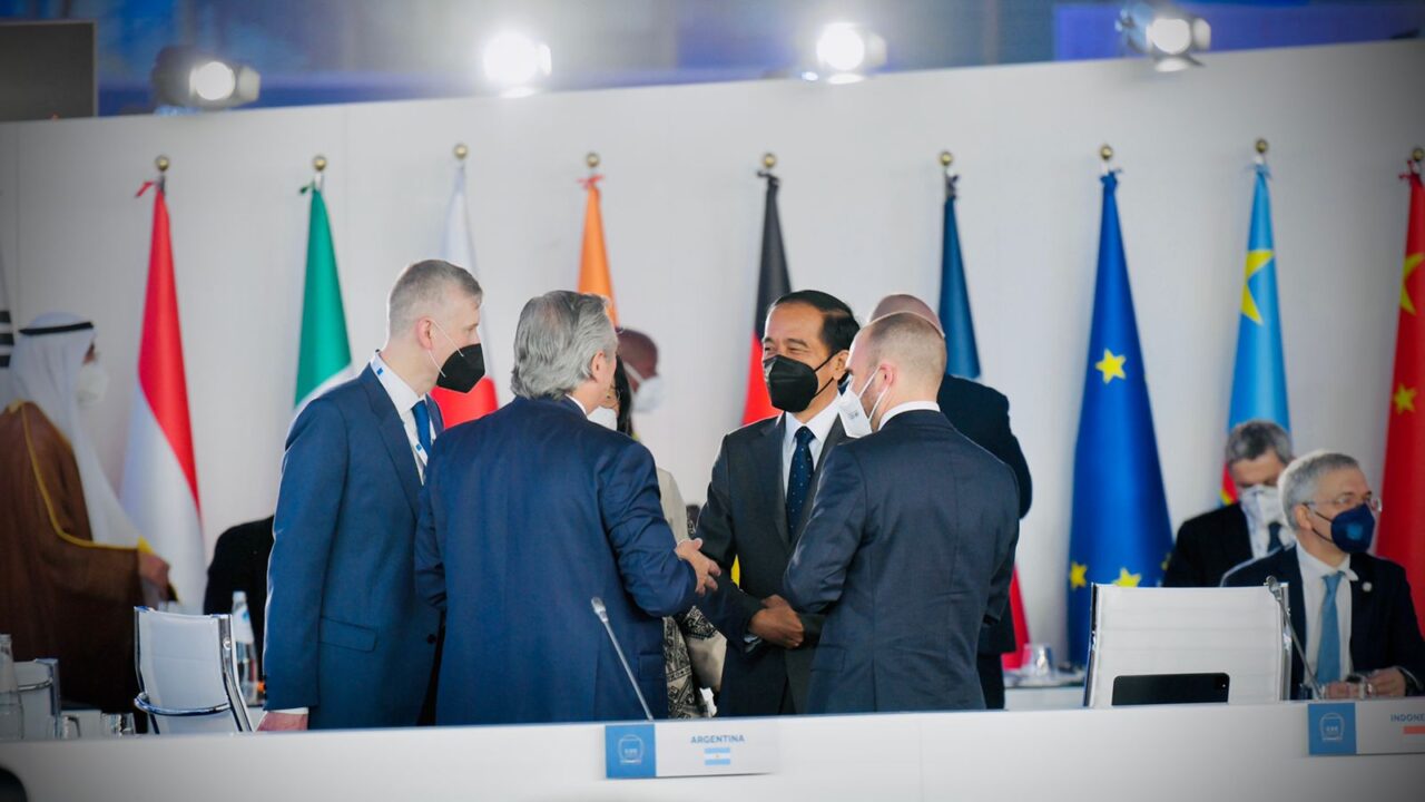 “Demi membangun dunia yang lebih tahan terhadap pandemi dan berbagai guncangan ke depan, Indonesia mengajak untuk memperkuat arsitektur kesehatan global,” ujar Presiden Jokowi yang pada kesempatan tersebut didampingi oleh Menteri Luar Negeri Retno Marsudi, Menteri Keuangan Sri Mulyani, dan Co-Sherpa Kementerian Luar Negeri Dian Triansyah Djani.