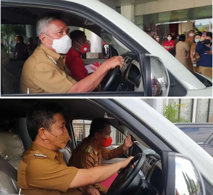 Dan sebelum unit kendaraan Ambulance diserahkan Bupati Franky Donny Wongkar SH., bersama Wabup Pdt. Petra Yanni Rembang M.Th, Sekda Minsel Denny P. Kaawoan SE., mengecek kelangkapan kendaraan serta melakukan test Drive di Area halaman kantor Bupati Minsel. (Corry Nj)