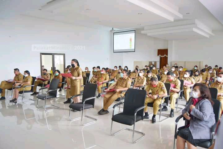 Turut hadir, Sekretaris Daerah Denny P. Kaawoan, SE., M.Si., Asisten 3, Pimpinan SKPD dan Para Camat. (Jem)
