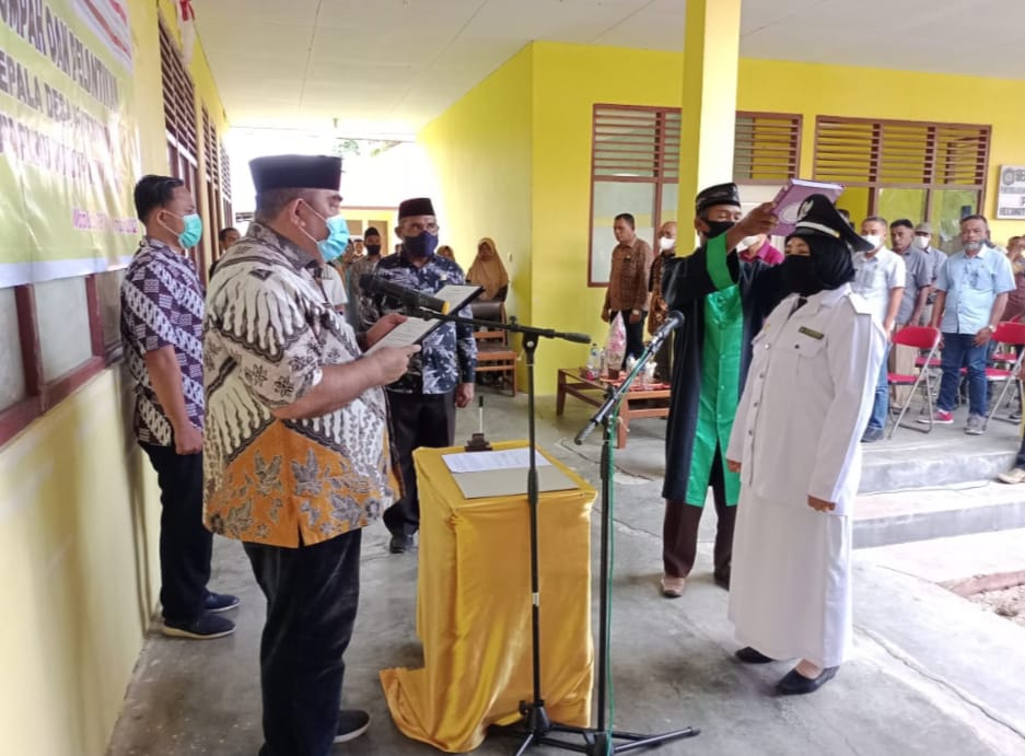 “Saya mengucapkan selamat kepada saudari yang baru saja dilantik,dan saya mengucapkan terima kasih dan penghargaan kepada mantan kades yang telah menjalankan tugas dengan baik dan penuh tanggung jawab yang pada hari ini terakhir menjalankan tugasnya, semoga saja tanggung jawabnya selama ini dapat direstui oleh Allah Subhanahuwa ta’ala” ungkapnya