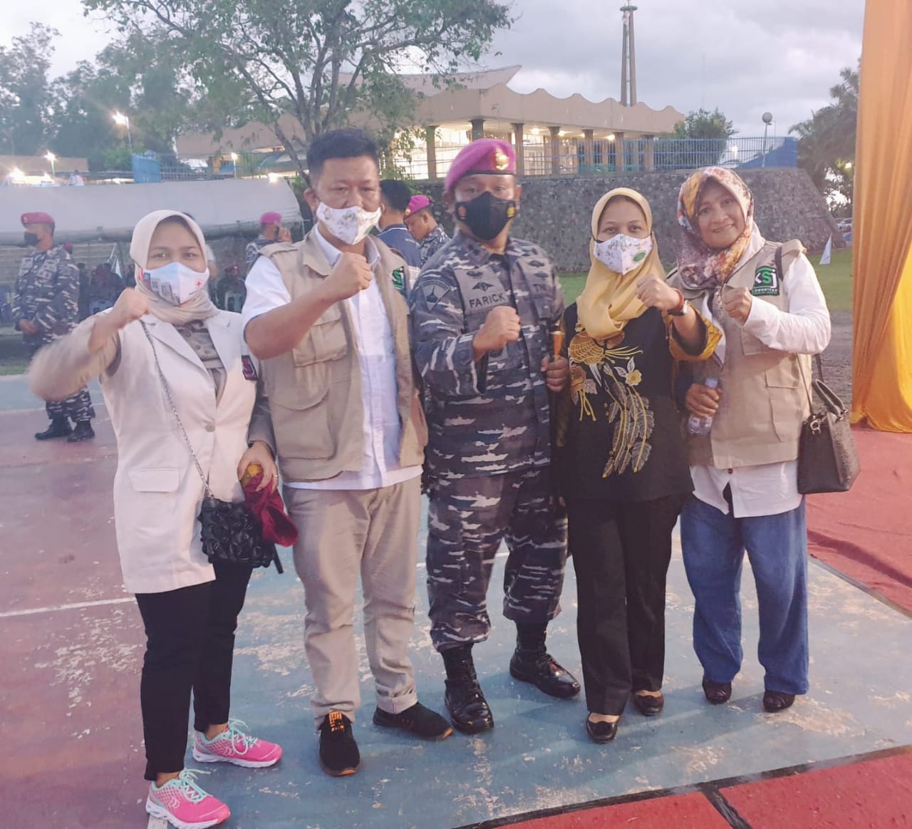 Danyon 8 Marinir Letkol Mar Farick, juga menyuguhkan atraksi beladiri dengan memukul batangan es, dan penampilan rabana dari para prajurit petarung harimau putih disamping pemberian cendramata plakat kepada dua organisasi sosial kemanusiaan ini.