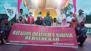 Dalam sambutanya Danyon 8 Marinir Letkol Mar Farick merasa bahagia bisa dikunjungi Pendiri dan Ketua Dewan Pembina KSJ AKBP Ikhwan Lubis SH, MH yang diwakili Drs Syaiful Syafri MM, Keyua Umum Saharuddin dan Ketua PMI Sumut DR Rahmadsyah dalam acara bakti sosial.