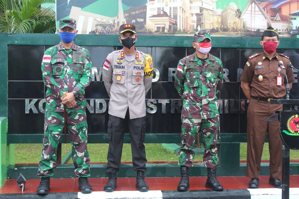 Diakhiri dengan foto bersama Kapolres Pelabuhan Belawan AKBP Faisal Rahmat H.S., SIK., SH., MH., dan Wakapolres Kompol Herwansyah Putra S.H., M.Si., di depan Mako Polres Pelabuhan Belawan dengan tetap memperhatikan protokol kesehatan. (Rahmat Hidayat/Danyonif 8 Mar Harimau Putih)