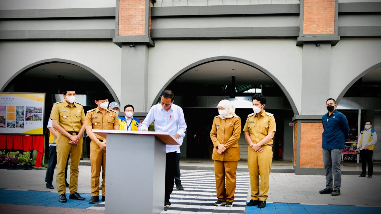 TERASNKRI.COM | JAKARTA – Dalam perjalanan menuju Helipad Menak Sopal, Kabupaten Trenggalek, Presiden Joko Widodo menyempatkan untuk singgah di Pasar Pon, Selasa, 30 November 2021. Di lokasi tersebut, Presiden meresmikan Pasar Pon yang telah direvitalisasi dengan menandatangani prasasti.